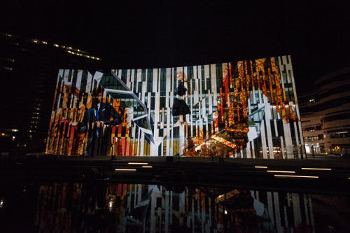 Das Münchner N&M-Studio setzte hierzu 3D-Mapping sowie 2D und 3D-Animationen ein, schlug eine Musikauswahl vor und entwarf das Sounddesign. Nach dem Videoschnitt folgte die Watchout-Programmierung für die zehn Panasonic DLP-Projektoren, die mit ihren 20.000 ANSI-Lumen aus einer Entfernung von 45 Metern eine Fläche von 66 mal 26 Meter (2-fach Softedge-Projektion) illuminierten.