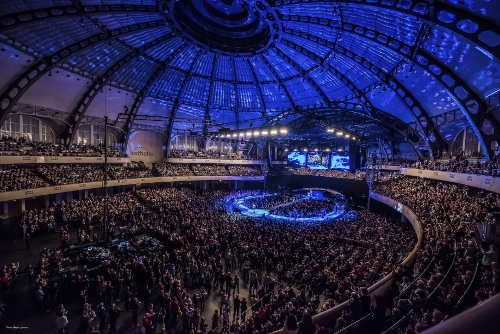 Volker Scherz, verantwortlich für Regie und Bildschnitt, ergänzte: „Aufgrund der 360 Grad Bühne mit ihren drei Laufstegen, die fast bis zur Mitte der Hallen gehen und bis zu zwölf Akteuren muss man ein Videokonzept erstellen, dass flexibel auf alle Showsituationen reagieren kann, aber dennoch im finanziellen Rahmen bleibt. Den Laufsteg und die Bühne decken wir mit zwei FOH-Kameras ab. Die beiden Kameras im Bühnengraben können sich drehen und sowohl Laufstege als auch die Bühne bedienen. Eine Handkamera mit Funk ist der Joker an den Laufstegen. Die Close-ups und die Bühne selbst realisieren wir mit einer Handkamera. Im Rang hinter der Bühne steht eine weitere Kamera, die Back-Shots macht und sogar die Laufstege erreicht. Zwei Fingerkameras an den Drums und zwei Domecams helfen mir über die Achsen und geben mir Bilder der Bühne, ohne das weitere Kameramänner auf der Bühne agieren müssen.“ Die Kameras geben ihre Signale an den SDI-Eingang der MA VPU, die wiederum diese mit äußerst geringer Latenzzeit als Live-Bild ausgibt.