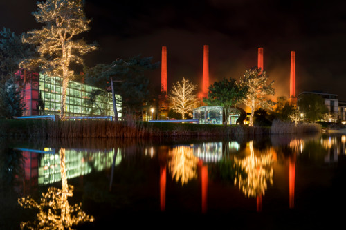 Bereits seit 15 Jahren verwandelt die Autostadt Wolfsburg ihren Themenpark in ein Winterland. Über der Kulisse thronen die rot beleuchteten historischen Schornsteine als riesige Adventskerzen. Erstmals wird in diesem Jahr bei der Illumination der ikonischen Schornsteine nachhaltige Plasma-Technologie von A&O Technology eingesetzt.