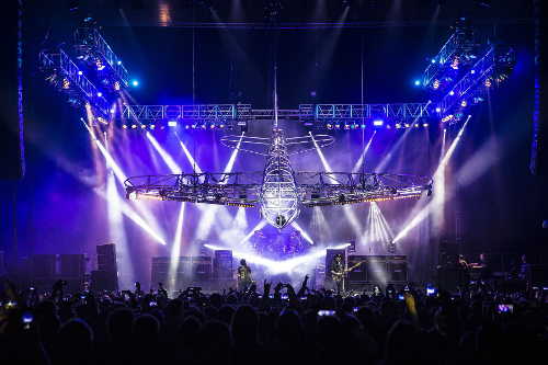Traditionell waren Motörhead Shows visuell eher im traditionellen Rock-Look gehalten, den Caio Bertti aber bereits 2013 aufbrach, als er 24 ROBE Pointe bei der „Aftershock“-Tour einsetzte – mit großem Erfolg, denn die Movinglights konnten die Band sofort überzeugen. Als es dann um eine Neuauflage des „Bombers“ für die „Bad Magic“ Tour ging, fiel die Wahl sehr schnell auf die vielseitigen ROBE Scheinwerfer. Dafür wurde die originale Traversenkonstruktion mit vier Pointe und vier LEDWash 600 versehen – ergänzt durch PARs und Strobos. Ein möglichst geringes Gewicht aller Scheinwerfer war von großer Bedeutung, da der Bomber inklusive aller Anbauten rund eine Tonne auf die Waage brachte – geflogen an sechs Kettenzügen.