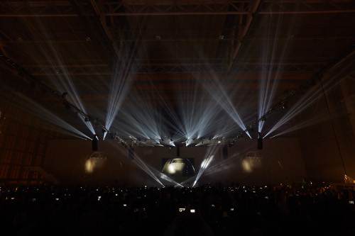Fünf LKW mit technischem Equipment, knapp 60 Techniker und Helfer vor Ort, zwei Tages- und eine Nachtschicht – so die Rahmendaten für die Aufbaubauarbeiten im Hangar. Neben Rigging, Audio, Video und Ton galt es für Sinus dabei auch, Lösungen für spezielle Anforderungen zu schaffen. So mussten beispielsweise mehrere Heizaggregate positioniert und für das Catering eine spezielle Strom-Infrastruktur aufgesetzt werden.