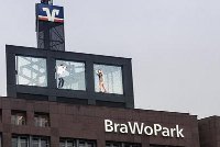 ICT war frühzeitig in die Planungs- und Testphasen der BraWoPark-Medienfassade eingebunden und konnte sein Know-how als medientechnischer Generalunternehmer der Medienfassade des Dortmunder U-Turms, die Vorbild für das Braunschweiger Projekt war, entsprechend einbringen. Die Medienfassade, von den einstigen Architekten des „Toblerone“-Gebäudes (gmp Architekten von Gerkan, Marg und Partner, Hamburg) geplant und entworfen, wurde in Form jalousieähnlicher LED-Lamellen in den vorhandenen Dachkronenkorpus integriert. Das ICT-Team verbaute in den neun Gefachen der Dachkrone tageslichttaugliche und für den Außeneinsatz geeignete LED-Technik, die heuer mit ihren 350.000 Einzel-LEDs eine umlaufende Gesamtbildfläche von 150 Quadratmeter bietet. Komplexe Steuerungstechnik, die ebenfalls von ICT programmiert und installiert wurde, sorgt für eine an die Umgebungsbedingungen angepasste, optimale Bilddarstellung und den energieeffizienten Betrieb der Anlage. Die künstlerischen Bildinhalte, die auf der Medienfassade visualisiert werden, stammen von Filmemacher Professor Adolf Winkelmann (Dortmund) und den Gewinnern eines extra dafür ausgeschrieben Wettbewerbs an der HBK Hochschule für Bildende Künste Braunschweig.