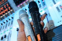 „Wir haben daraufhin einen direkten Kunden von Swarovski mit der Umsetzung des Designs beauftragt. An jedem Mikrofon wurden in präziser Handarbeit nahezu 3000 Kristalle angebracht“, erklärt Thomas Holz. „Dabei kam ein neuartiges, aufwendiges Klebeverfahren zum Einsatz, das nach dem mehrtägigen Trockenverfahren keinerlei sichtbare Spuren hinterlässt und somit wesentlich zum edlen Erscheinungsbild des Mikrofons beiträgt. Auch die Kapsel lässt sich, trotz des Klebeverfahrens, einwandfrei auf- und abschrauben. Um sicher zu gehen, dass die Swarovski Elements, die auch Teile der Antenne am Handsender verzieren, nicht zu Einschränkungen bei der Funkübertragung führen, haben wir die Mikrofone durch unseren HF-Spezialisten bei Sennheiser Klaus Willemsen prüfen lassen.“