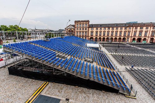 Im Ehrenhof des Barockschlosses Mannheim hat Bülent Ceylan an drei Terminen im Juli vor je 10.000 Zuschauern ein Heimspiel gefeiert. eps lieferte Tribünen und Stühle, damit das Publikum die vierstündige Show des Comedians erleben konnte.