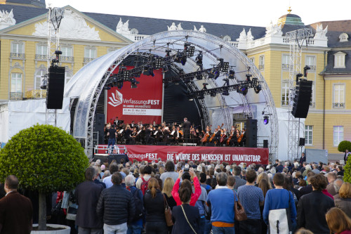 Kürzlich ist die Geburtsstunde des Grundgesetzes mit einem mehrtägigen Verfassungsfest vor dem Karlsruher Schloss gefeiert worden. Den Auftakt bildete eine Eröffnungsshow: Nach einer kleinen Gesprächsrunde mit prominenten Gästen, unter anderem Ministerpräsident Winfried Kretschmann und der Präsident des Bundesverfassungsgerichtes, Andreas Voßkuhle, eröffnete die Badische Staatskapelle die Feierstunde mit einem Live-Konzert.