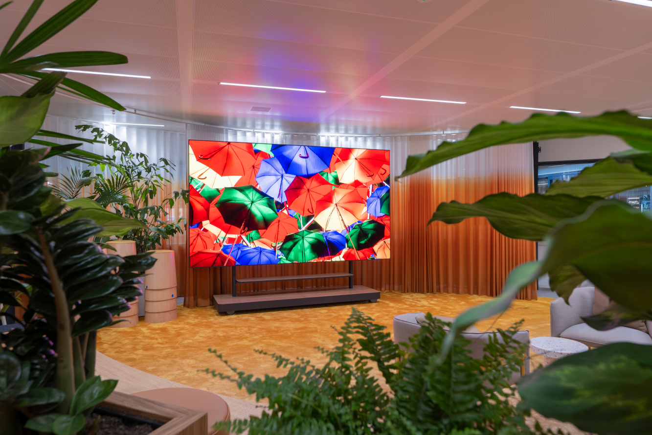 Das Herzstück des neuen Office ist ein großformatiges Sony CLED-Display aus der CH-Serie, das im Café und im Gemeinschaftsbereich installiert ist. Das Display fungiert als Mittelpunkt bei Mitarbeiterversammlungen und Live-Übertragungen. „Das Miro-Büro ist dynamisch und flexibel gestaltet“, sagt Wilco Poppelier, Workplace Strategy and Projects bei Miro. „Windside Digital hat uns empfohlen, die Bravia-Technologie von Sony zu verwenden, weil diese alle Anforderungen von Miro perfekt erfüllt: blendfrei, hochauflösend und fernsteuerbar. Die Crystal LED-Installation stach hervor, als wir das Design dieser Sony-Stele und die Bildschirmqualität mit anderen Anbietern auf dem Markt verglichen haben.“