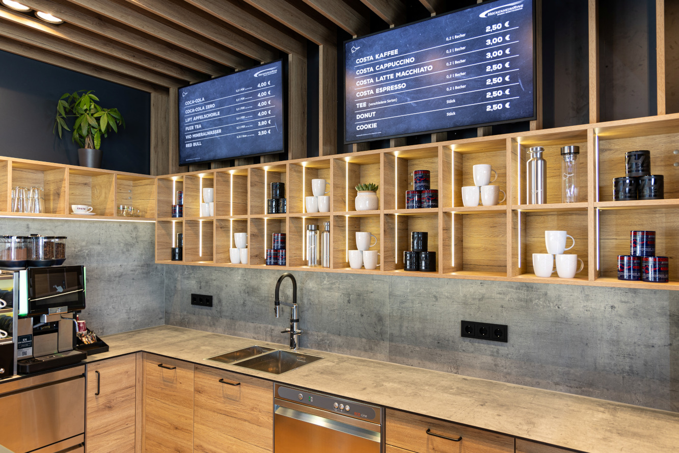 Hockenheimring setzt auf Digital Signage von Samsung (Fotos: Hockenheim-Ring GmbH)Im Eingangsbereich des Welcome Centers begrüßen 98 Zoll Displays die Besucher. Im Inneren sind Bildschirme in Stelen eingelassen. Sie informieren über die Historie des Hockenheimrings und anstehende Events. Darüber hinaus kommt die QMC-Serie von Samsung unter anderem am Ticketcounter und an der Kaffeebar zum Einsatz. Die schlanken Displays bestechen dabei durch ein blendfreies UHD-Panel. „Die Geräte fügen sich perfekt in die Architektur ein, wodurch der gesamte Auftritt sehr harmonisch wirkt“, schildert Matthias Scheffler. Für den Content kommt MagicInfo Cloud ins Spiel. Mit der Digital-Signage-Software von Samsung kann das Personal des Hockenheimrings Inhalte erstellen, planen und auf die Bildschirme verteilen.