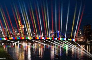 Zwei Tage vor dem Eröffnungsspiel der Fußball-Europameisterschaft 2024 stimmt sich Frankfurt am Main mit einer Licht- und Musikshow auf das vierwöchige Fußballfest ein. Frankfurt...