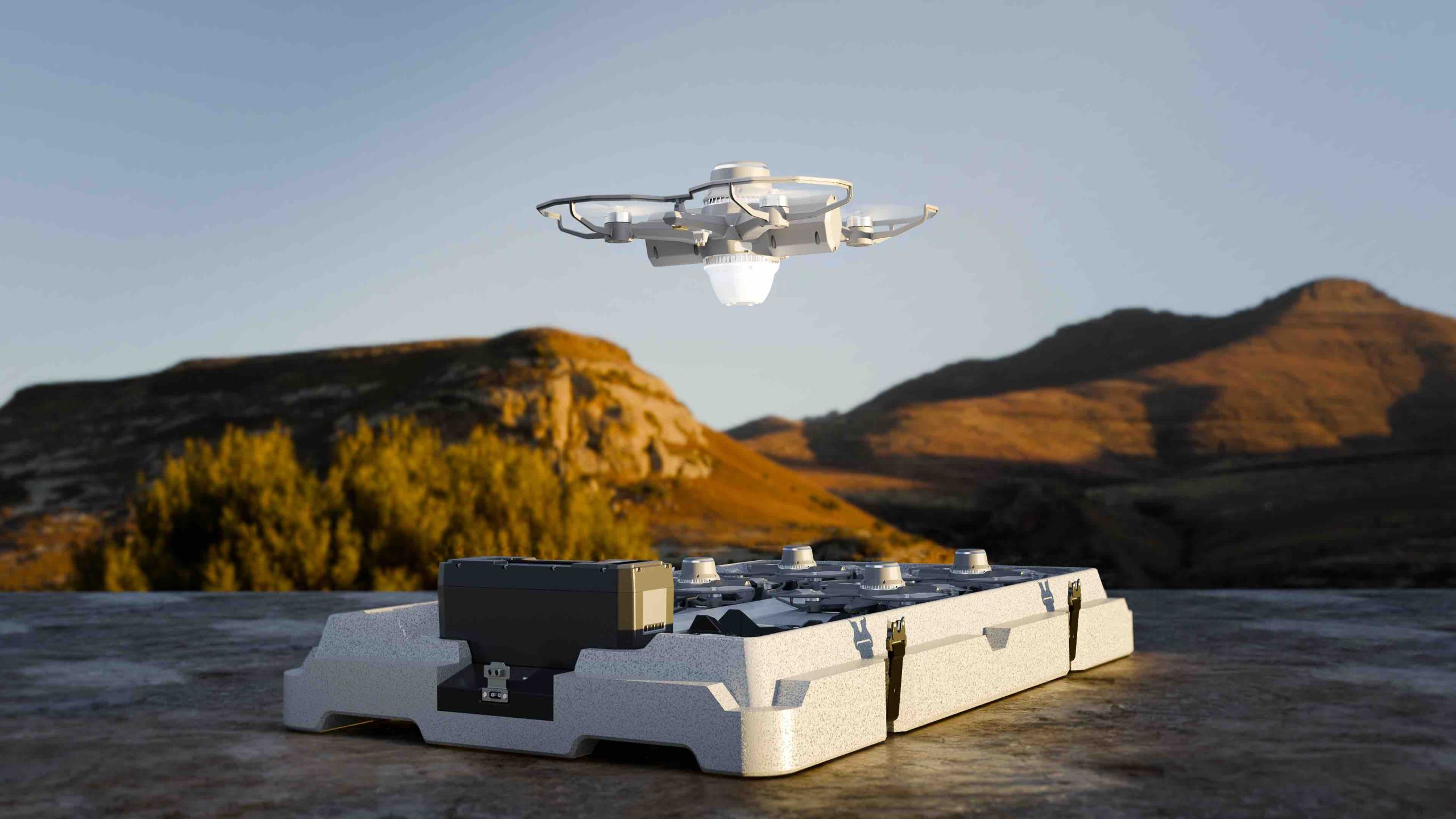 Ein zentrales Element des Systems sind die modularen Trays, die jeweils sechs Drohnen aufnehmen. Diese Trays dienen gleichzeitig als Lade-, Start- und Landeplattformen. Die Drohnen werden in den Trays durch Pods fixiert, was das Handling vereinfacht und den logistischen Aufwand erheblich reduziert. Dank der Stapelbarkeit der Einheiten lassen sich auch große Stückzahlen effizient lagern, transportieren und einsetzen.